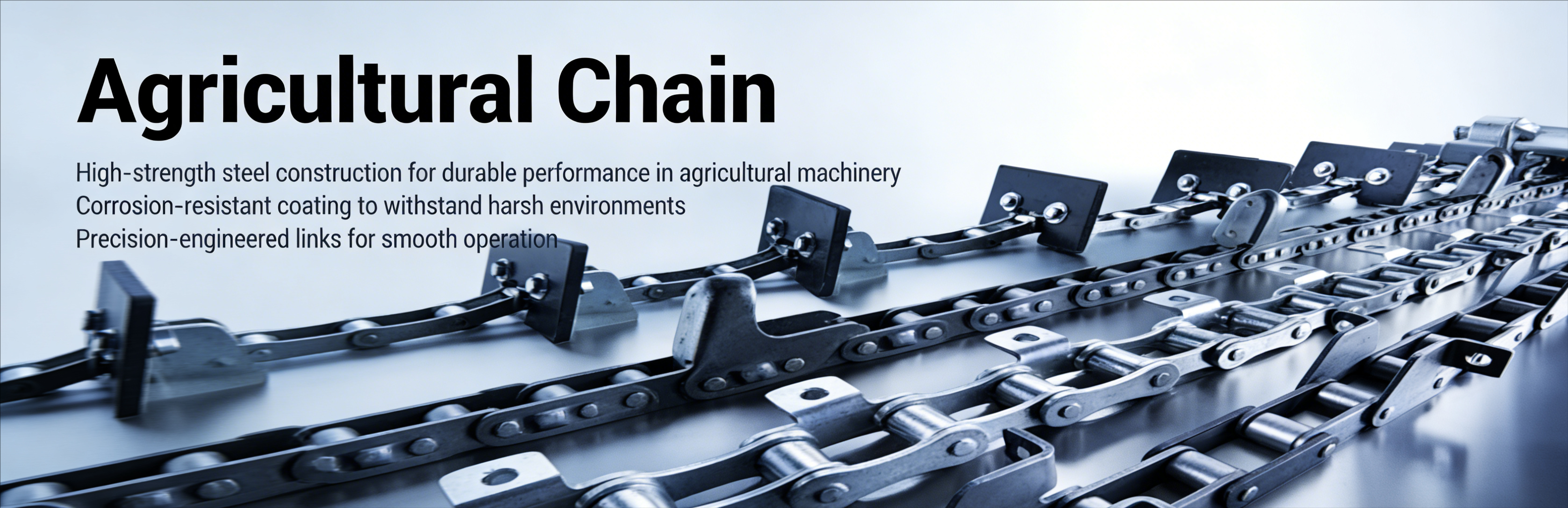 Agricultural chains come in various sizes, pitch configurations, materials, and coatings to suit different farming applications. Proper maintenance, lubrication, and periodic inspection are crucial to ensure the longevity and performance of agricultural chains in the field.