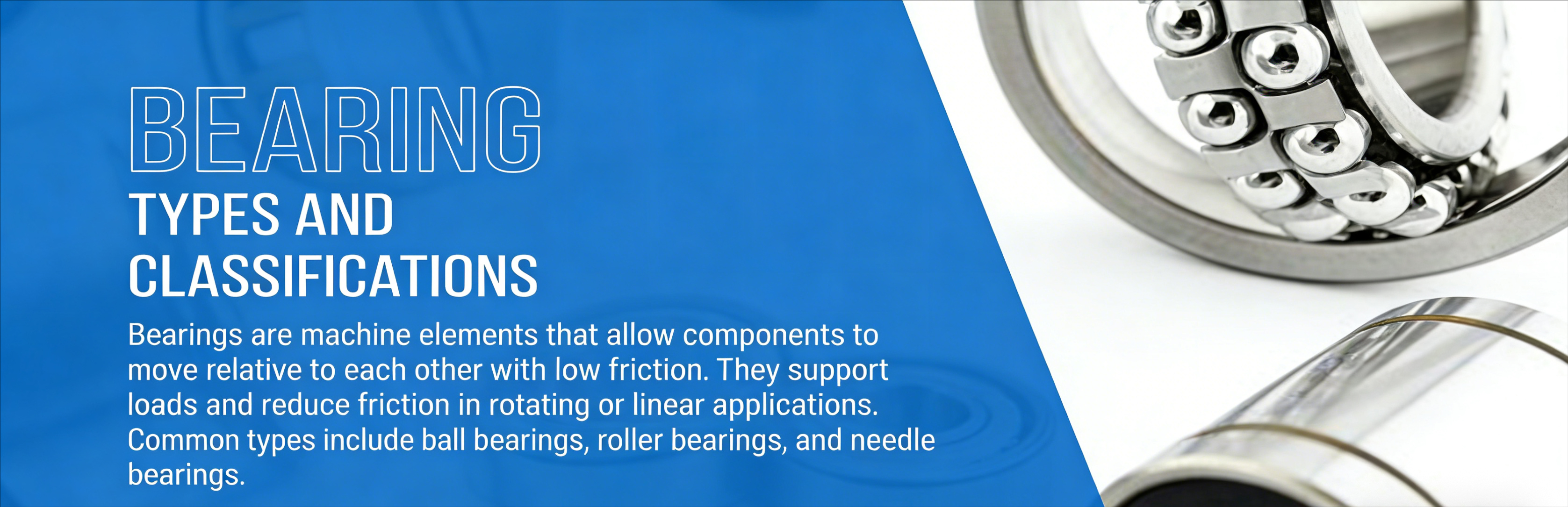 Bearings are crucial mechanical components that enable rotational or linear movement while reducing friction between moving parts. Here is an introduction to the classification of bearings based on their design and application: