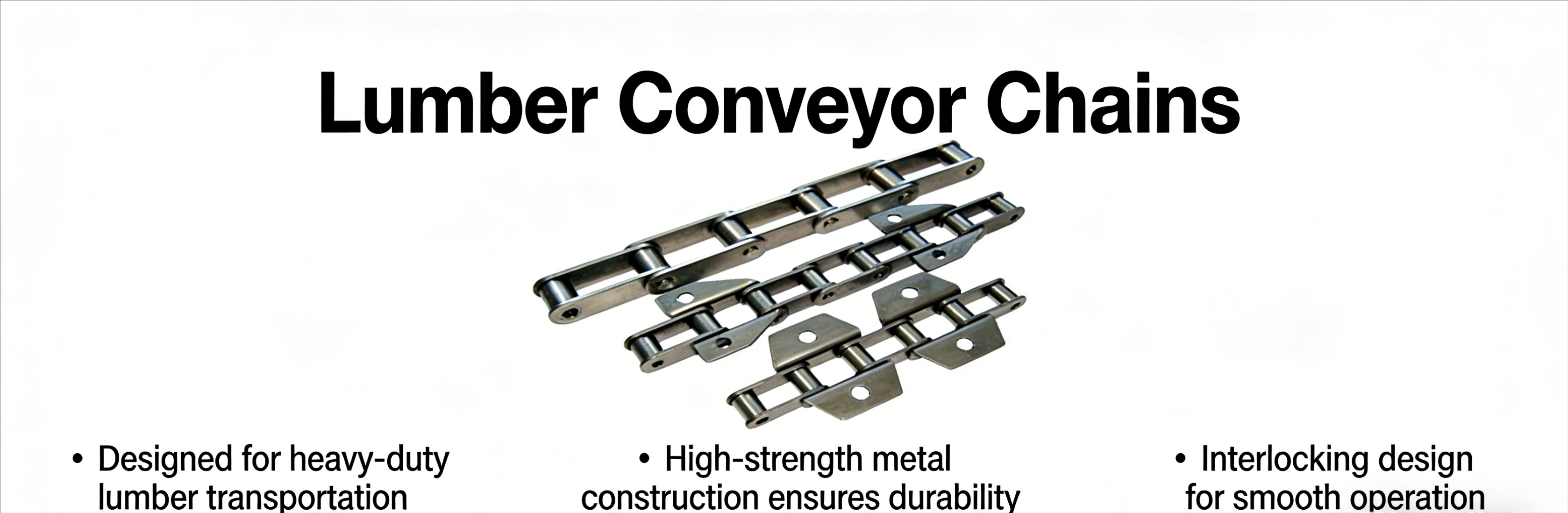 Lumber conveyor chains are specialized types of conveyor chains designed specifically for the timber and lumber industry. These chains are used to transport logs, planks, boards, and other wood products throughout sawmills, lumber yards, and wood processing facilities.