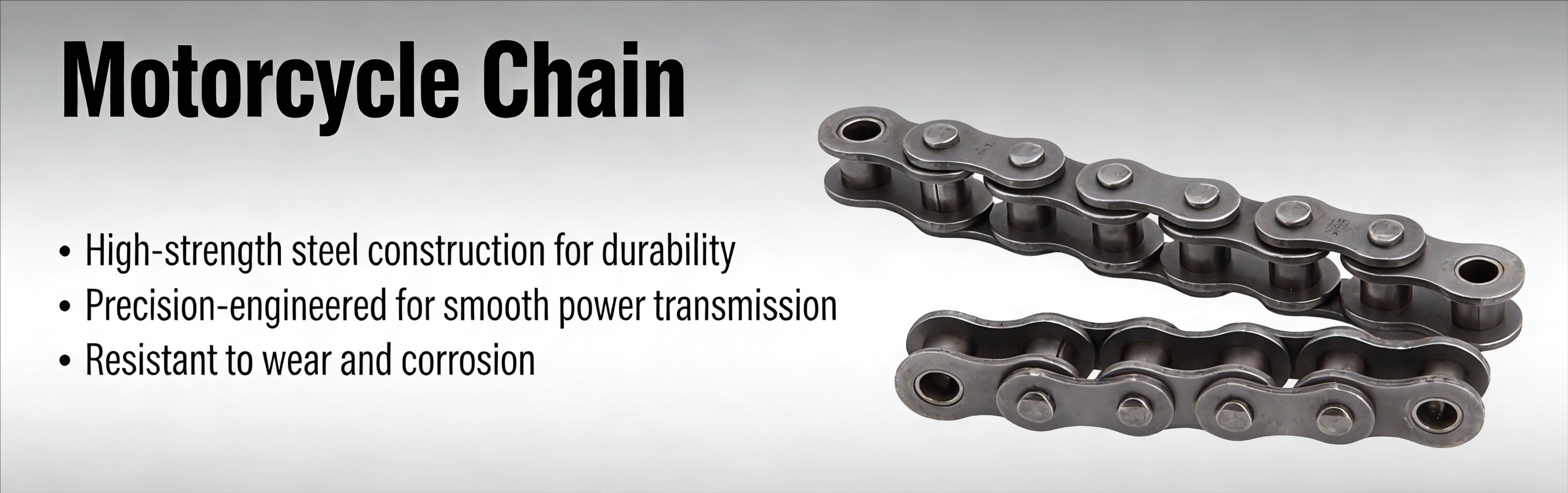 A motorcycle chain is a type of roller chain specifically designed for motorcycles to transfer power from the engine to the rear wheel. It plays a critical role in transmitting torque from the sprocket on the output shaft of the engine to the sprocket on the rear wheel, enabling the motorcycle to move.